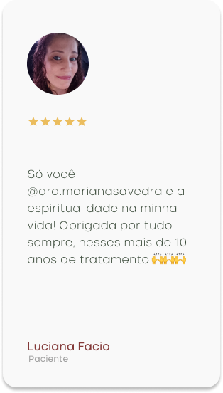 Dra. Mariana Savedra é psiquiatra com mais de 18 anos de experiência, especializada em Psiquiatria do Estilo de Vida e homeopatia. Apaixonada por promover o bem-estar e a qualidade de vida, ela fundou a Savedra Saúde Integral com o objetivo de oferecer um atendimento que vai além do convencional, ajudando seus pacientes a viverem de forma equilibrada e saudável. Membro da Associação Brasileira de Psiquiatria, membro titular do Instituto Hahnemanniano do Brasil e do Colégio Brasileiro de Medicina do Estilo de Vida, Dra. Mariana está comprometida com a atualização contínua de sua prática e com a busca por novas abordagens para oferecer um cuidado ainda mais completo e eficaz. Além disso, é palestrante e professora, sempre compartilhando seu conhecimento para transformar a saúde mental e emocional dos pacientes.